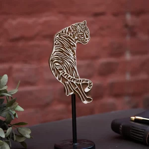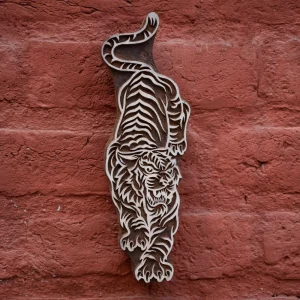 Curio de bloque de madera grabado a mano fina / pieza de pared – El tigre